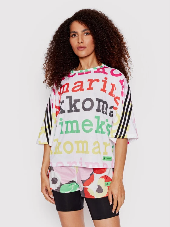 Πολύ καλή προσφορά ⭐ Adidas Γυναίκες T-shirts T-Shirt MARIMEKKO H67090 Λευκό Loose Fit Λευκό ✔️